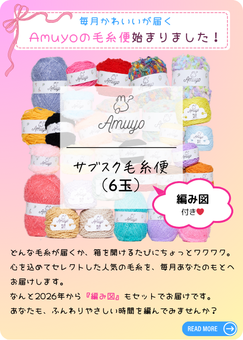 はじめましての方へ。🧶 Amuyoの毛糸便は、 “上手に編む”より“心地よく編む”を大切にしています。 途中からでも、いつからでも大丈夫です🧶 サブスク毛糸便 よくある質問&お問い合わせ Amuyoメインサイト amuyo.official Yarn・Handmade・Crochet kit 原宿の竹下通りでひっそり営業中🐇 📍 〒150-0001 東京都渋谷区神宮前1-19-1 T’s LINK原宿 1F Amuyo 🕛 OPEN 12:00/CLOSE 19:00(不定休) Instagram 投稿 18100056310728905 New Arrival レースチュールヤーン 🩰ベージュ ♠️ブラック こちらも単体で編んでも引き New Arrival ピロピロ 🍼ミルク 🦋バタフライピー ☕️カフェラテ 引き揃えがカワイイ糸 Amuyoオリジナル毛糸【金平糖】 🩷サクラ 🩵スカイブルー 💛レモン 🆕🤍ベイビーホワイト 🆕🌈レ information Instagram 投稿 17846422026649848 🧧🎍 HAPPY NEW YEAR 🎍🧧 あけましておめでとうございます✨ 2026年も、心がほ 年末のご挨拶⛄️ 2025年、Amuyoに出会ってくれた皆様、本当にありがとうございました🧶💗 店舗再入荷🏠✨📢 トゥインクル、ミルクコットン(白・薄黄色・薄ピンク)、ユニコーン、スパークル(白) Amuyoでは韓国MIX毛糸も販売開始🧶🐇 韓国から取り寄せを開始しました😌✨ 色んな種類があるので さらに読み込む Instagram でフォロー